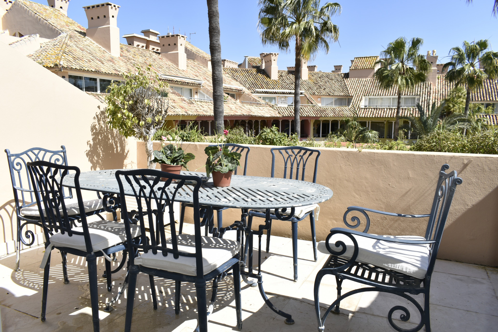 Ático de tres dormitorios y dos baños, situado en la última planta, con una agradable terraza con vistas al puerto y parciales al mar. La vivienda cuenta con salón-comedor con acceso directo a la terraza, cocina equipada y un dormitorio principal con baño en suite y salida a una de las dos terrazas, mientras que los otros dormitorios incluyen armarios empotrados y salida a la segunda terraza. La propiedad requiere alguna pequeñas reformas, lo que representa una excelente oportunidad para personalizarla y aumentar su valor. Dispone de aire acondicionado y suelos de mármol, que aportan confort y elegancia al espacio. Su ubicación es inmejorable, a poca distancia caminando de la playa, restaurantes, comercios y todos los servicios, y además se encuentra dentro de la zona del Puerto con seguridad y vigilancia 24 horas, ofreciendo tranquilidad y comodidad.