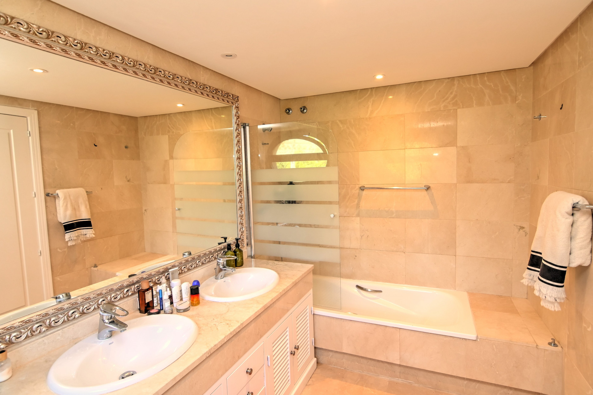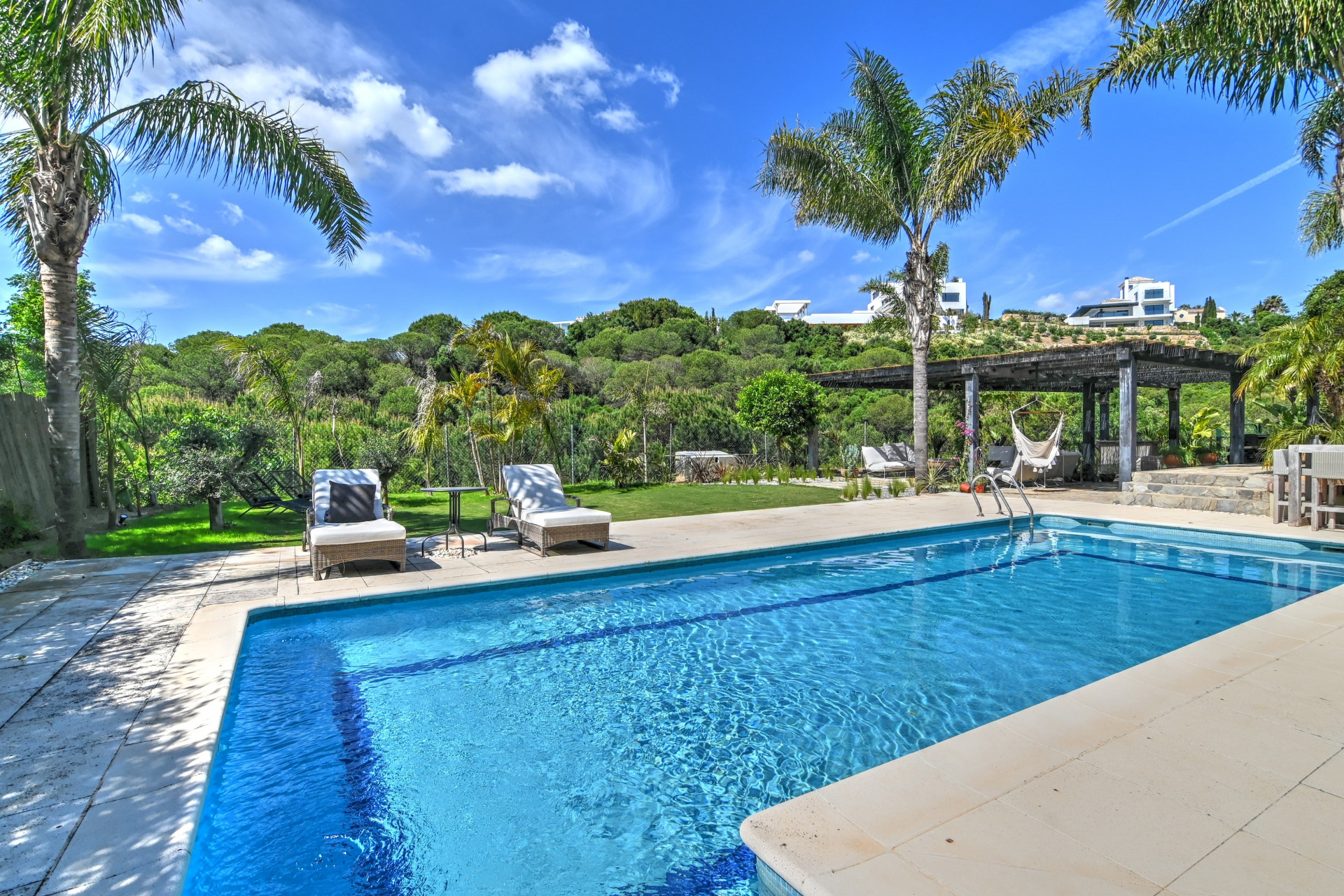 Magnífica casa semi-adosada en la exclusiva y segura urbanización Soto Golf, en Sotogrande Alto, a pocos minutos del prestigioso Real Club Valderrama.Recientemente renovada y en excelente estado, ofrece 340 m² construidos sobre una parcela de 950 m², con orientación suroeste y gran luminosidad. Dispone de 4 dormitorios. En la planta principal encontramos un amplio salón-comedor con chimenea, conectado a terraza cubierta y jardín privado con piscina, cocina totalmente equipada, un dormitorio versátil y baño completo.En la planta superior se ubica el dormitorio principal con baño en suite, vestidor y terraza privada, además de dos dormitorios que comparten baño.Cuenta con calefacción central de gas, aire acondicionado y excelentes zonas comunes con piscina y pista de pádel, en un entorno tranquilo y cercano a colegios, restaurantes y campos de golf.