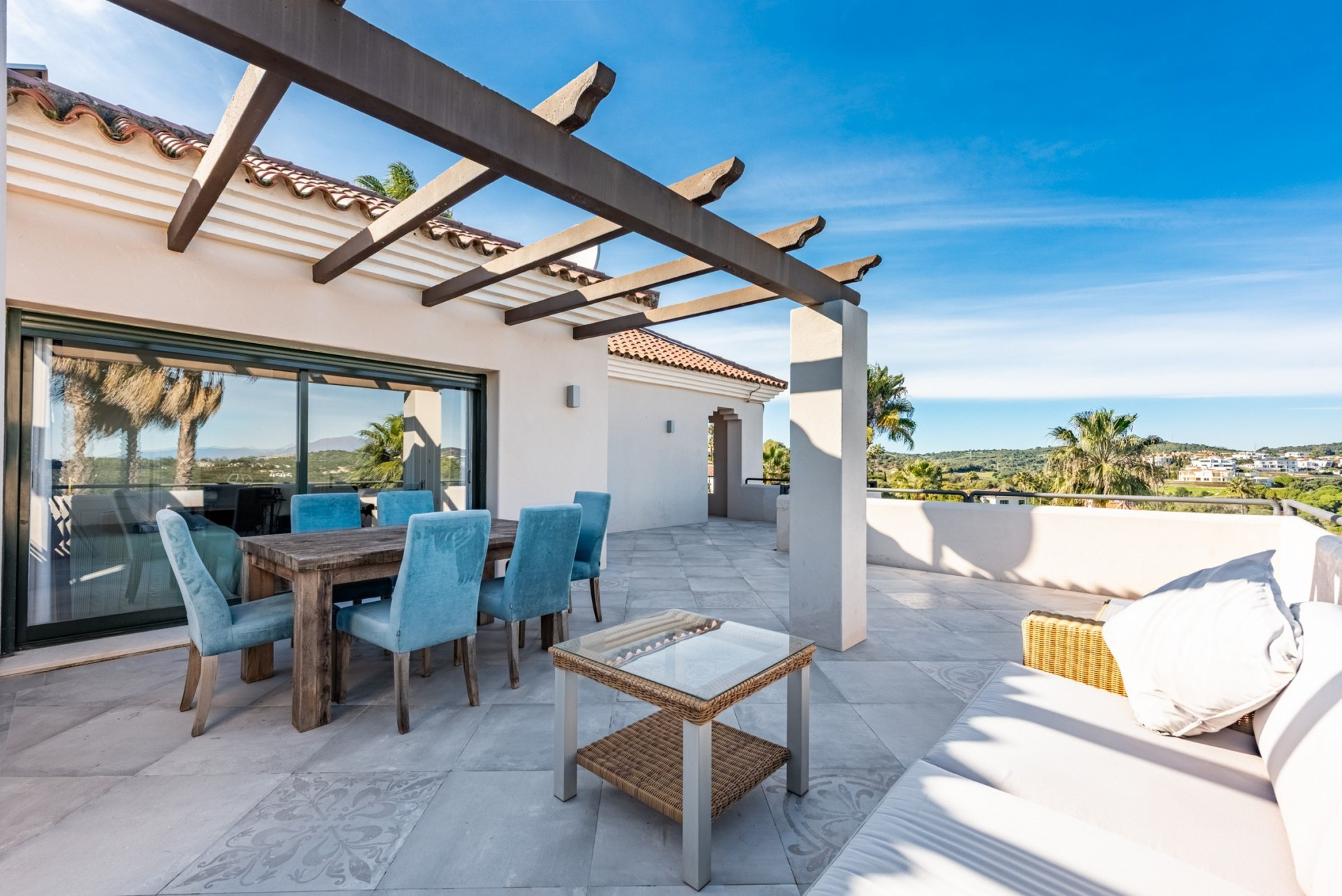 Elegante villa de estilo andaluz situada en una exclusiva y tranquila calle sin salida en Sotogrande Alto. La propiedad ofrece 4 dormitorios en suite y un aseo de cortesía, garantizando máxima privacidad y confort. Destaca por sus impresionantes vistas abiertas a la Sierra Nevada, el mar y reconocidos campos de golf como Valderrama, La Reserva y Almenara. Rodeada de un cuidado jardín privado, cuenta con piscina independiente y amplias terrazas renovadas con acabados de alta calidad. Equipada con modernas soluciones sostenibles, incluyendo paneles solares, sistema de baterías e instalación para carga de vehículos eléctricos. Dispone además de un amplio sótano con potencial para ampliación (gimnasio, cine o dormitorios adicionales). Una propiedad que combina lujo, eficiencia y ubicación privilegiada en una de las zonas más demandadas del sur de España.