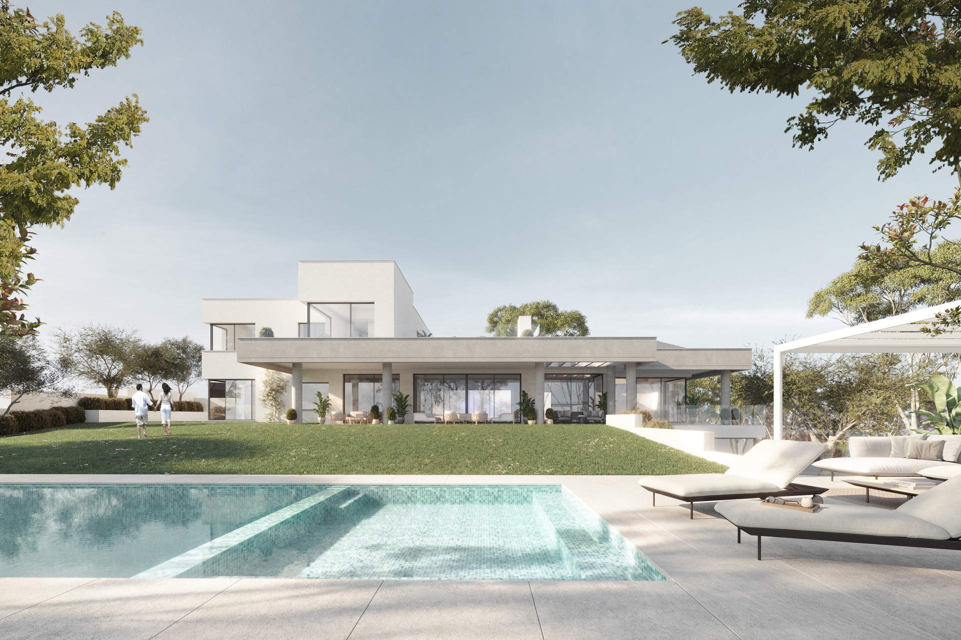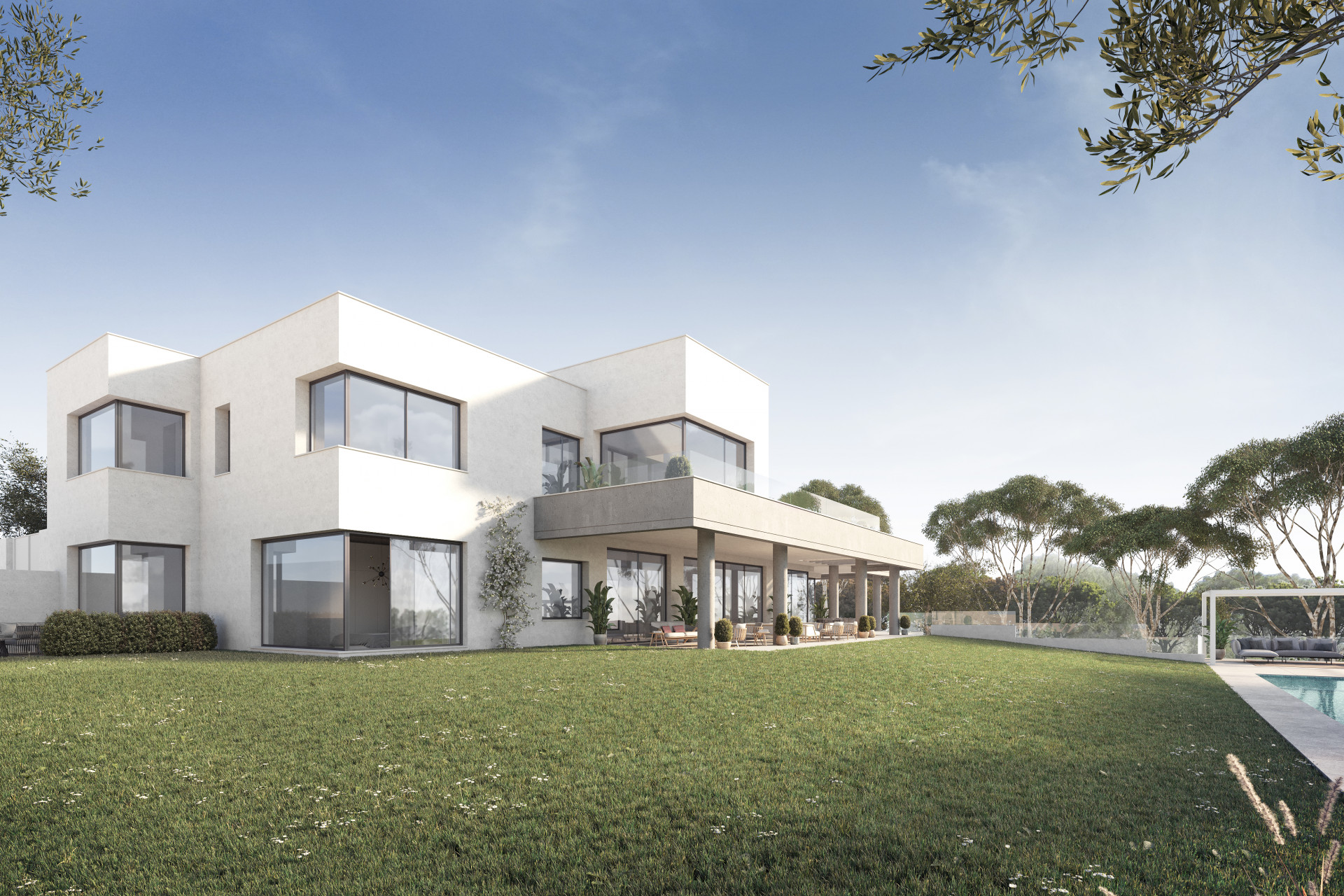 Estructura: Cimentación y Forjados: Losa de hormigón armado; Pilares: Hormigón y Metálicos .Cerramientos Envolvente: Fábrica de hormigón celular 36.5cm marca Ytong.Perfilería: Marca Reynaers.Correderas: Serie CP130 de aluminio con rotura de puente térmico y con sistema de apertura elevable.Oscilobatientes: Serie CS77 de aluminio con rotura de puente térmico.Cubierta: Cubierta no transitable, impermeabilización con PVC y aislamiento polietileno extruido de 6+6 cm y protección con grava de canto rodado. Interiores. Particiones: Hormigón celular diferentes espesores 20/10 cm marca YTONG, como aislante térmico y acústico. Carpintería: Puerta de entrada: Puerta abatible 2.50×1.60m de madera de Iroko de primera calidad. Puertas de paso: Madera de Pino Flandes de primera calidad texturizado lacada en blanco. De 2.20 y 2.40m de altura. Suelos: Planta Baja: Mármol Crema Golden. Planta Primera: Tarima flotante de Roble de 2.00×0.15m.Baños: Aplacado con piezas porcelánicas de gran formato (piezas de 3.00×1.10m) en diferentes acabados. Sanitarios: Marca Duravit. Grifería: Marca Grohe. Climatización. Bomba de calor: Producción frío/calor para calefacción, refrigeración y agua caliente sanitaria. Marca Daikin. Planta Baja: Suelo radiante y Fan coils marca Daikin. Planta Primera: Suelo y techo radiante/refrescante. Suministro de agua caliente sanitaria. Ventilación mecánica controlada. Sistema de ventilación mecánica controlada con recuperador de calor en toda la vivienda. Deshumidificación. Sistema de deshumidificación del aire en Planta Primera. Marca Daikin. Aislamientos. Suelos de planta Baja: Aislamiento con polietileno extruido 6+6. Saneamiento: Aislamiento acústico tuberías de saneamiento. Cubierta: Aislamiento polietileno extruido 6+6 cm. Certificación energética. Calificación energética de clase A. Consumo energía estimado de 0.05 KW h/m2 año. Emisiones 0.00 Kg CO2/m2 año. Sistema de seguridad con detectores volumétricos de presencia y videovigilancia. Instalación de control domótico de la vivienda. Repetidores wifi en planta baja y primera. Preinstalación de posible conexión de paneles solares en cubierta.